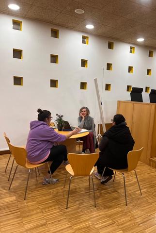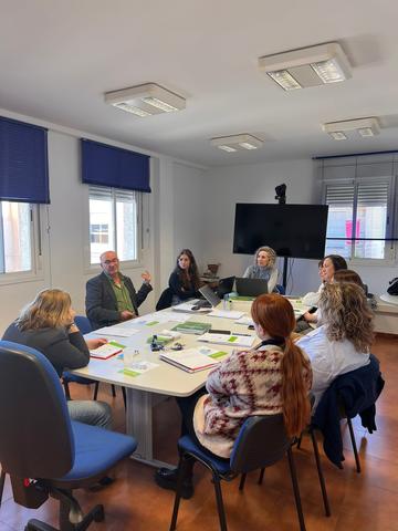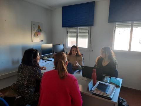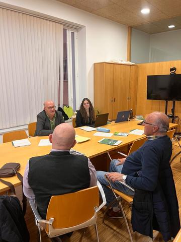 Asistentes: José Colsa, Clara Ferrández, Estela García (alumna en prácticas) y 2 representantes (2 hombres) de asociaciones de la comarca (The Book Project y Asociación de la Tercera Edad y Asociación Española Contra el Cáncer)