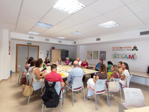 Pepe Colsa, asesor de área de la OIAC y Lorena Harriero; el responsable de los servicios sociales de la diputación de Jaén, la directora del centro de Servicios Sociales de Torredelcampo y trabajadoras , educadores, psicologos de los servicios comunitarios de Fuete del Rey, Jamilena, Martos y Castillo de Locubin.